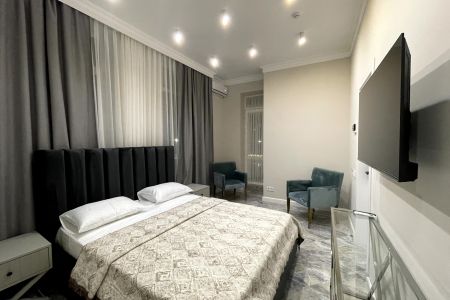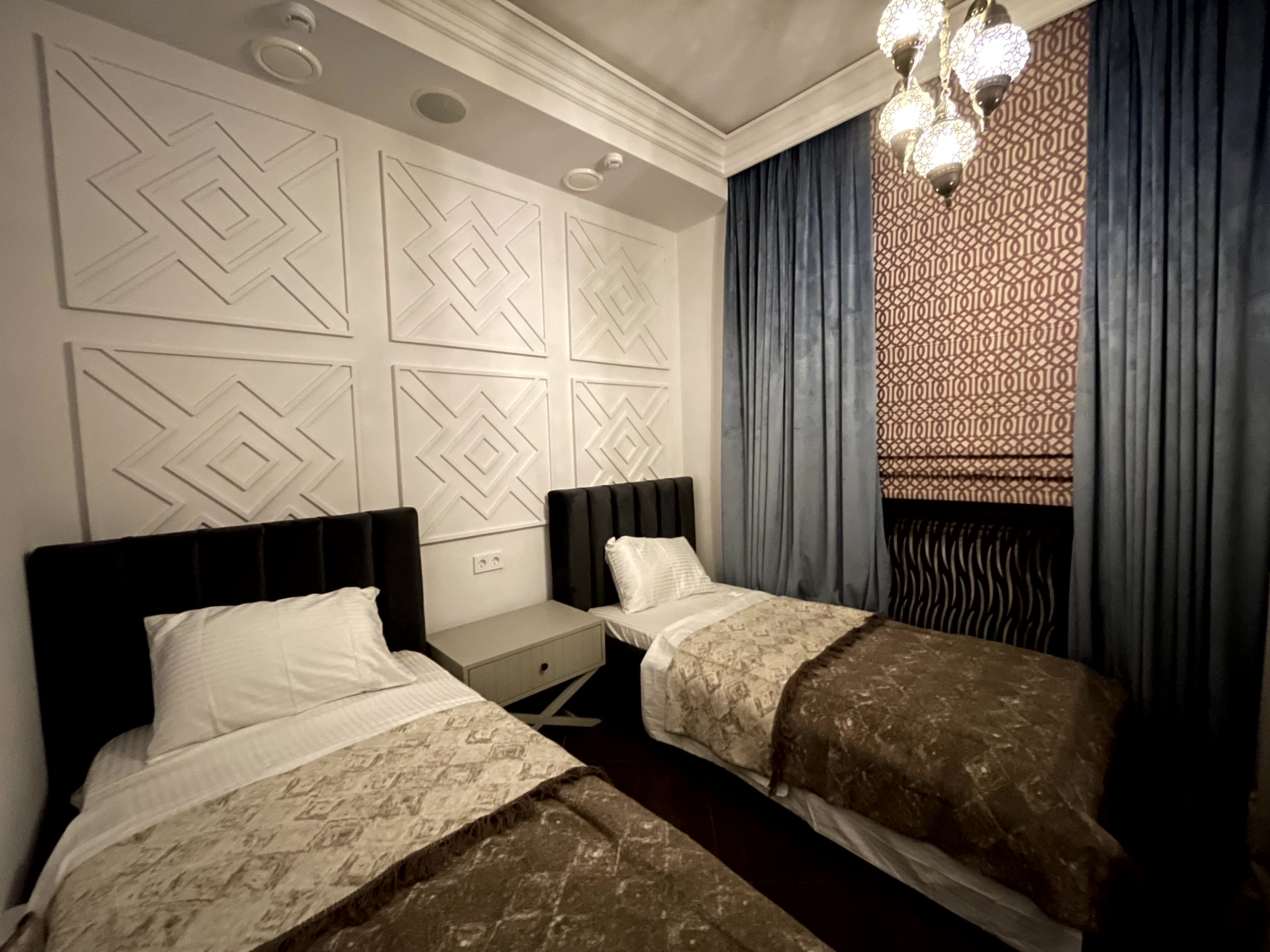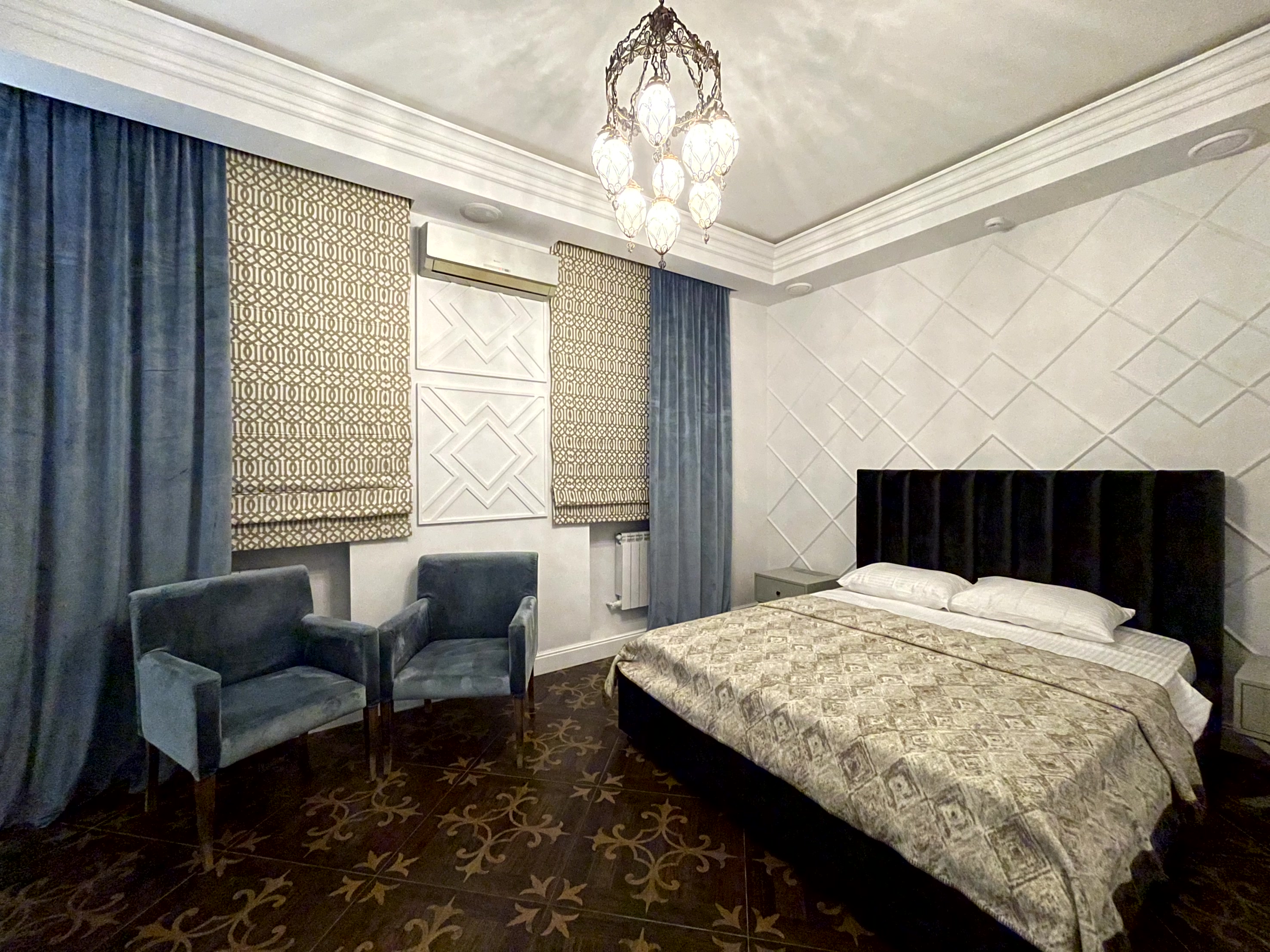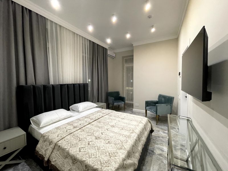 В отеле представлено 6 номеров, каждый из которых оформлен в уникальном стиле, сочетающем классические и восточные элементы. Все комнаты полностью меблированы, имеют телевизоры, кондиционеры и собственные ванные комнаты с полотенцами и туалетными принадлежностями. На 1 этаже отеля расположена уютная кофейня, где можно насладиться вкусными завтраками и десертами в течение всего дня.